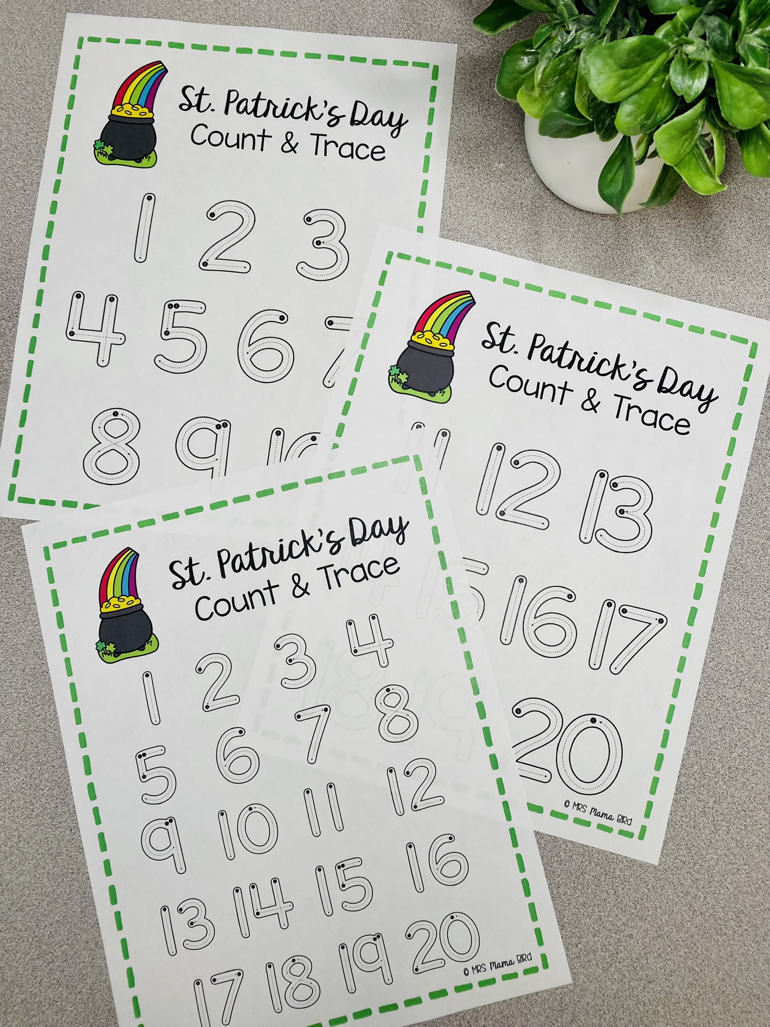 Counting is also an important skill to learn in the preschool years. I’ve included two St. Patrick’s Day themed activities to practice counting with your little learners.