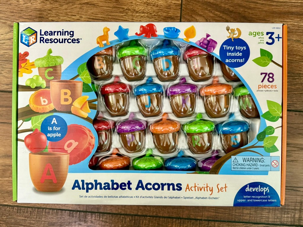 Not only does this Teaching Tote have toys and puzzles but it also includes some hands on learning activities to introduce your preschooler to concepts like the alphabet and number forms.