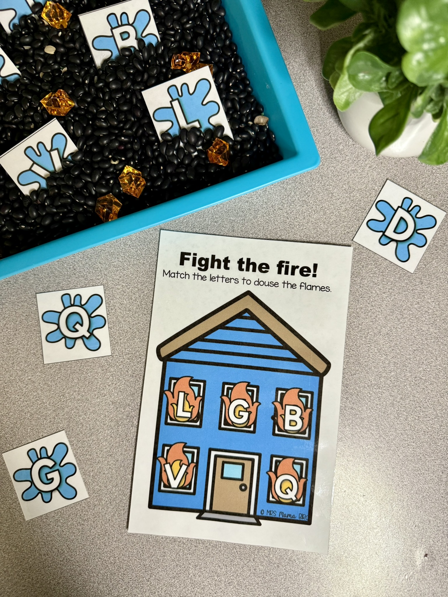 The Fire Safety Alphabet Cover is a fun way to identify letters while using the “water” cards to “put out the fire.” I LOVE this game because each house fire mat only displays 5 – 6 letters. So you can choose how many letters you want to practice (focus on one card or focus on five). If your child is just learning letters, one or two mats might be best. If your child knows their letters but just wants to review, go ahead and use all 5 mats. The mats come in uppercase letters or lowercase letters and the cards also have uppercase, lowercase and beginning sound variations. This gives you some choice as far as what you would like to focus on with your child. Click the picture for more details!