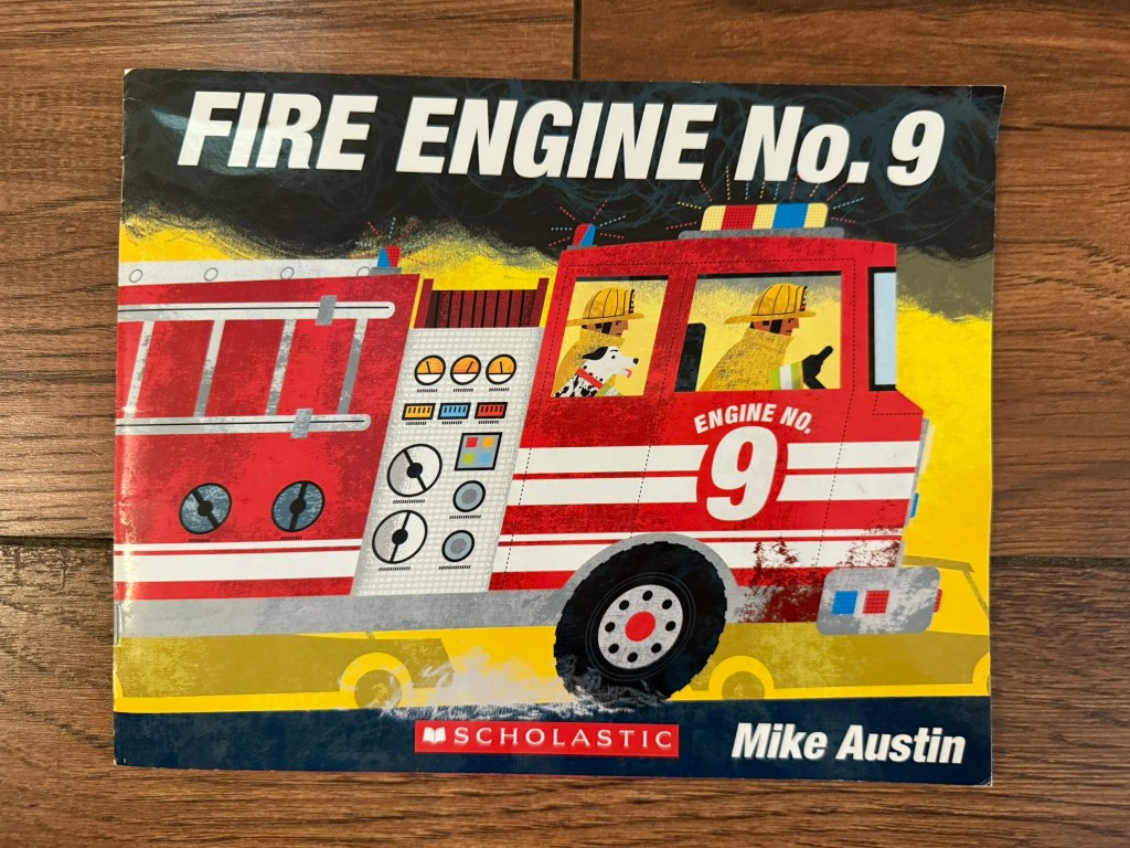 Fire Engine No. 9 is an absolute favorite in my house. The illustrations are action packed. This story depicts a group of fire firefighters responding to a fire at Luigi’s restaurant. The only words are sounds (alarm bells, sirens, etc.) or short demands from the crew like “Climb!” and “Pull!” In the end, the firefighters save the day! There’s even a page in the back that goes over fire safety tips at home.