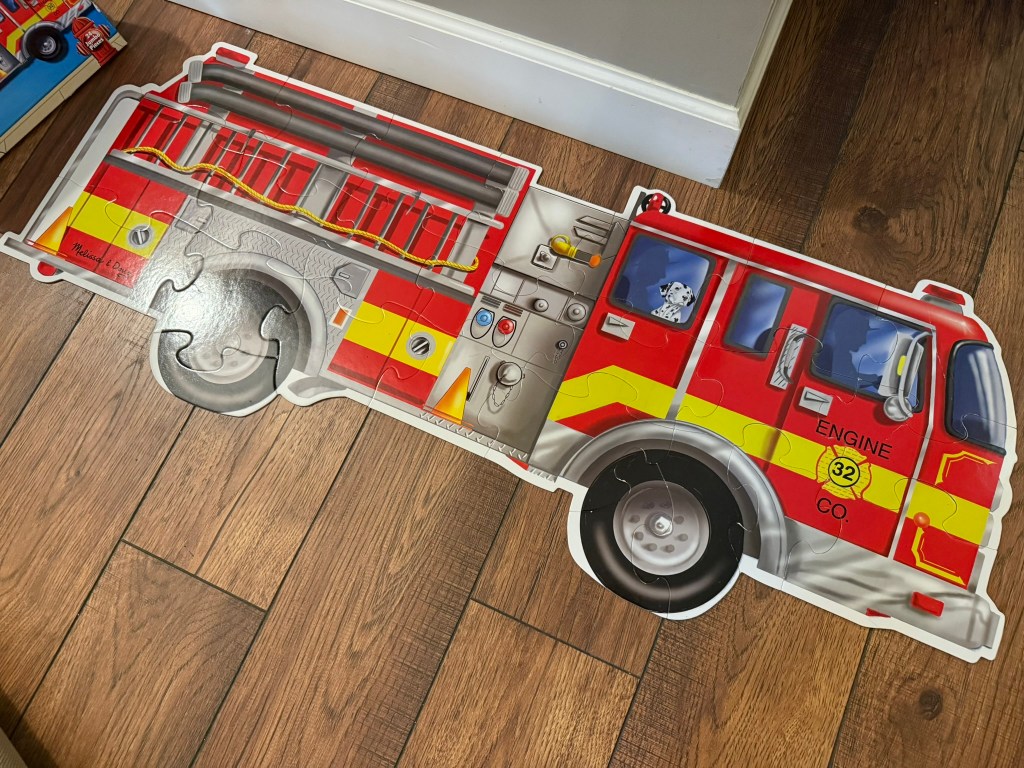If you’re interested in adding the Giant Firetruck Floor Puzzle to your playroom, click the completed puzzle picture below.