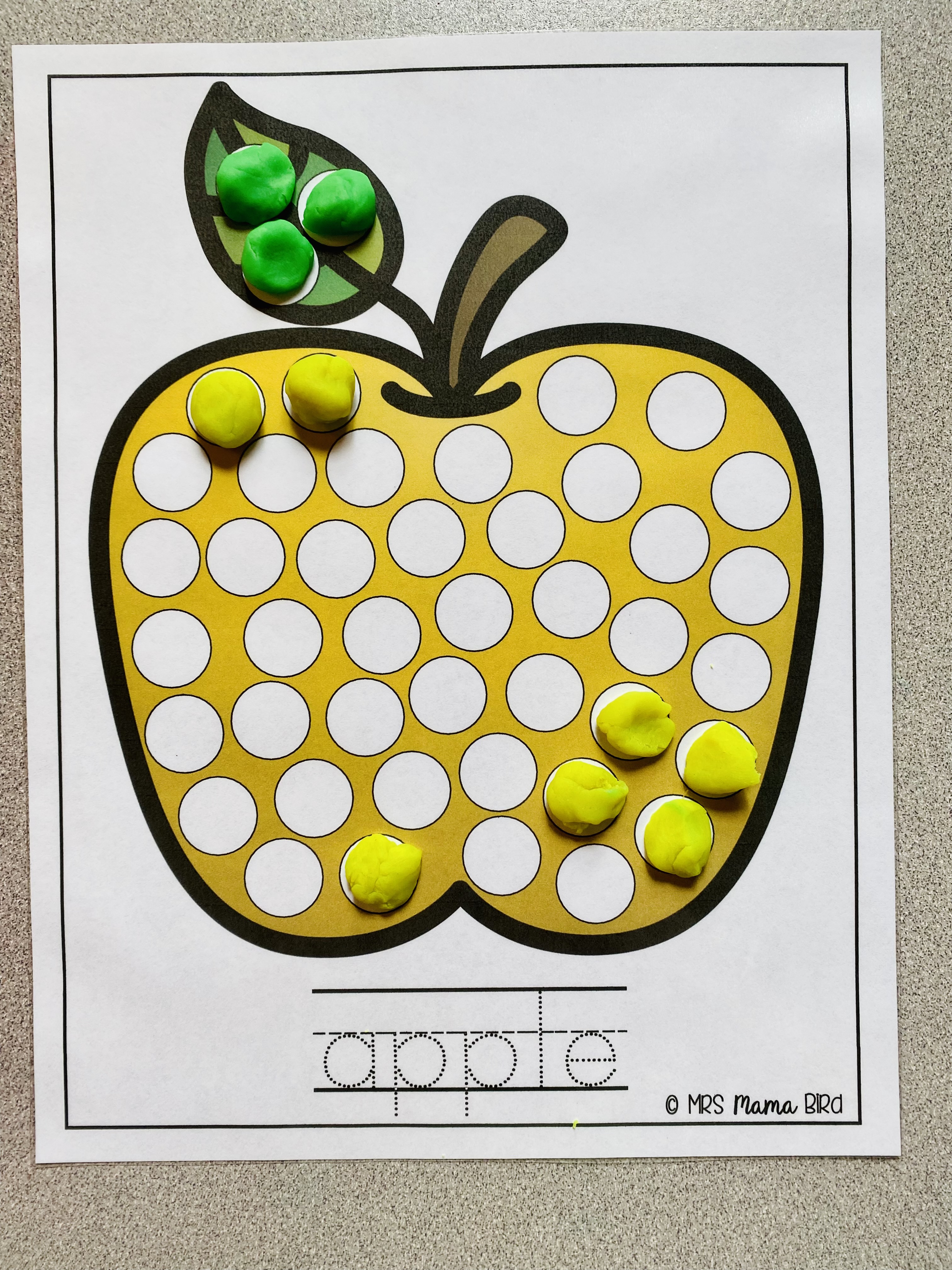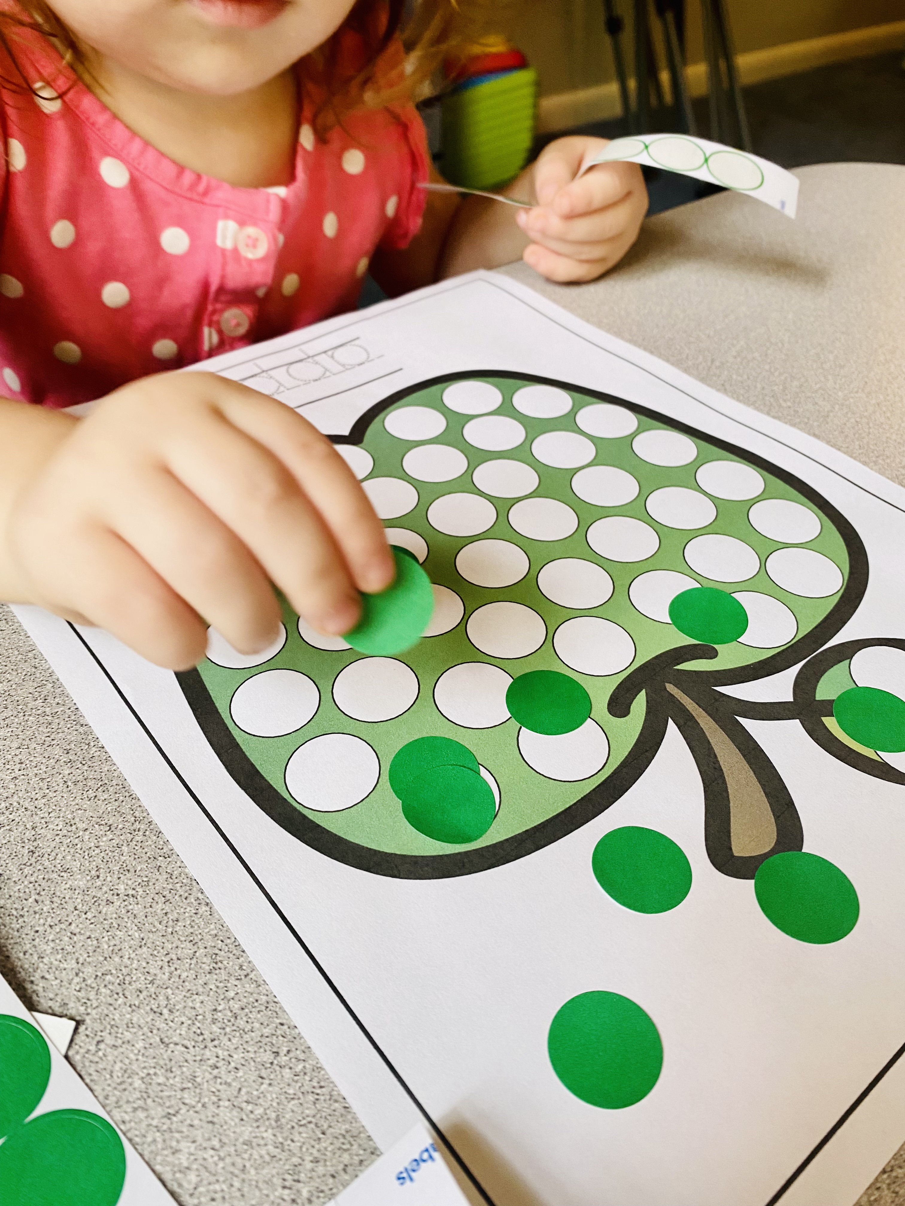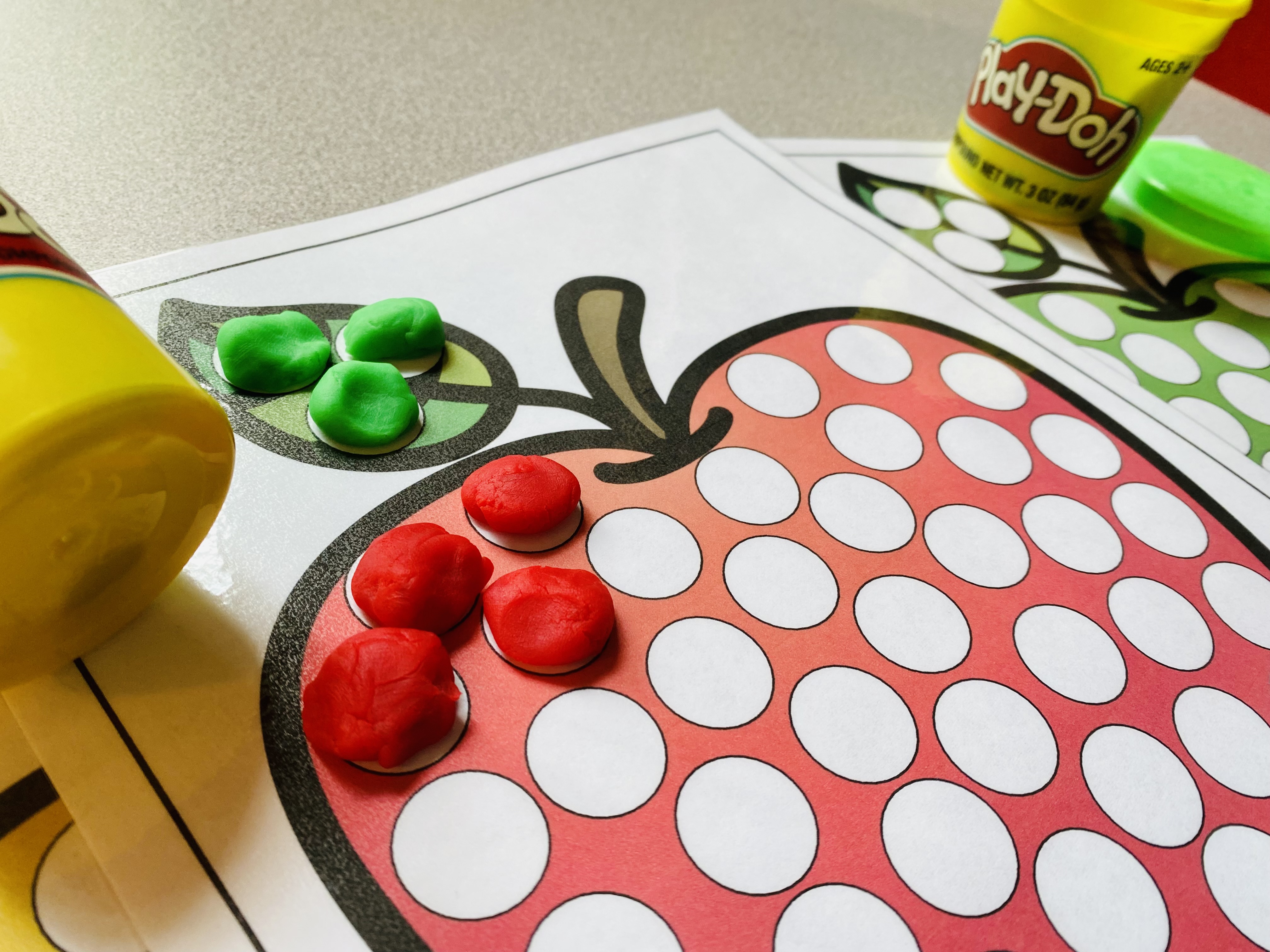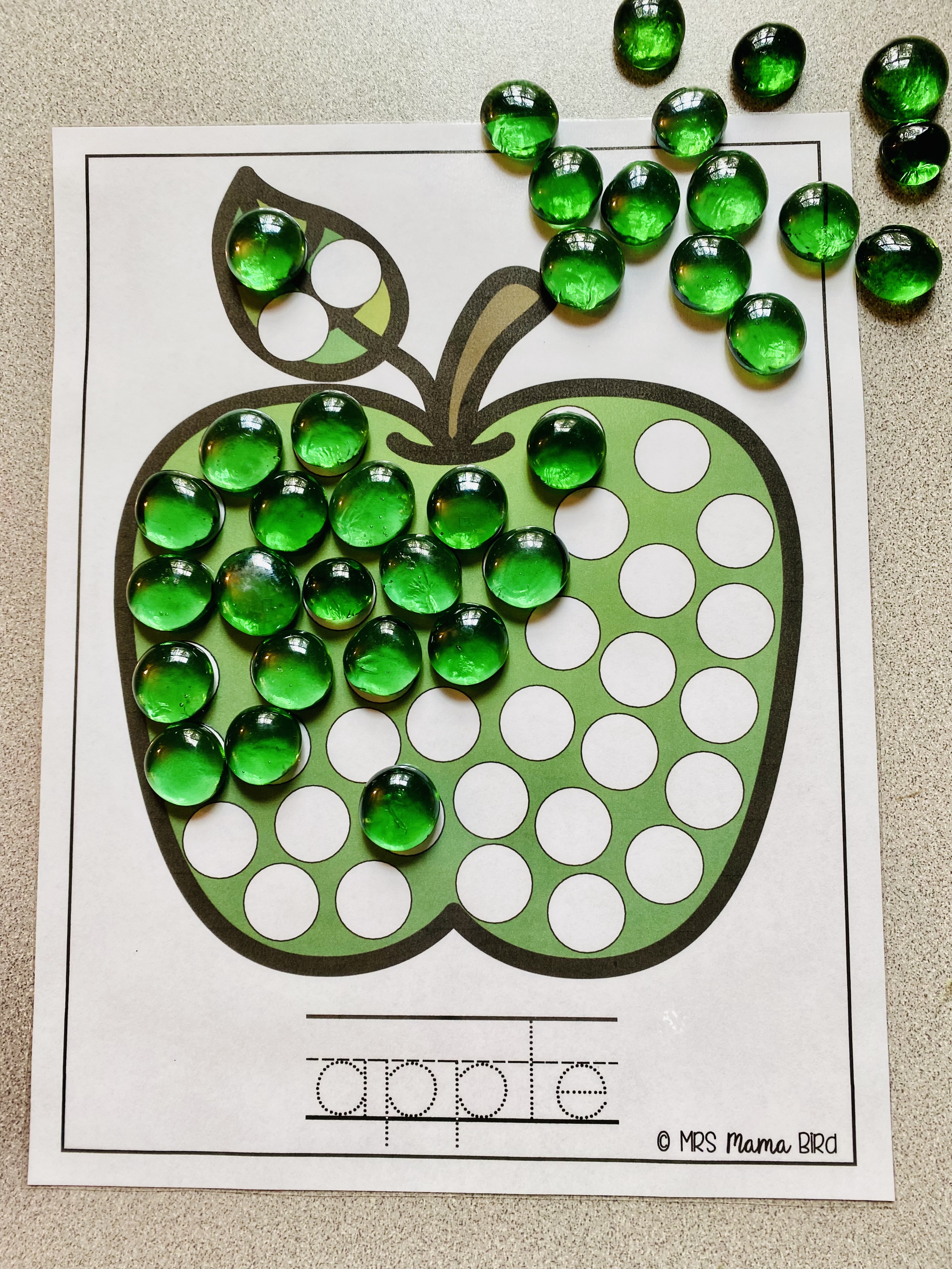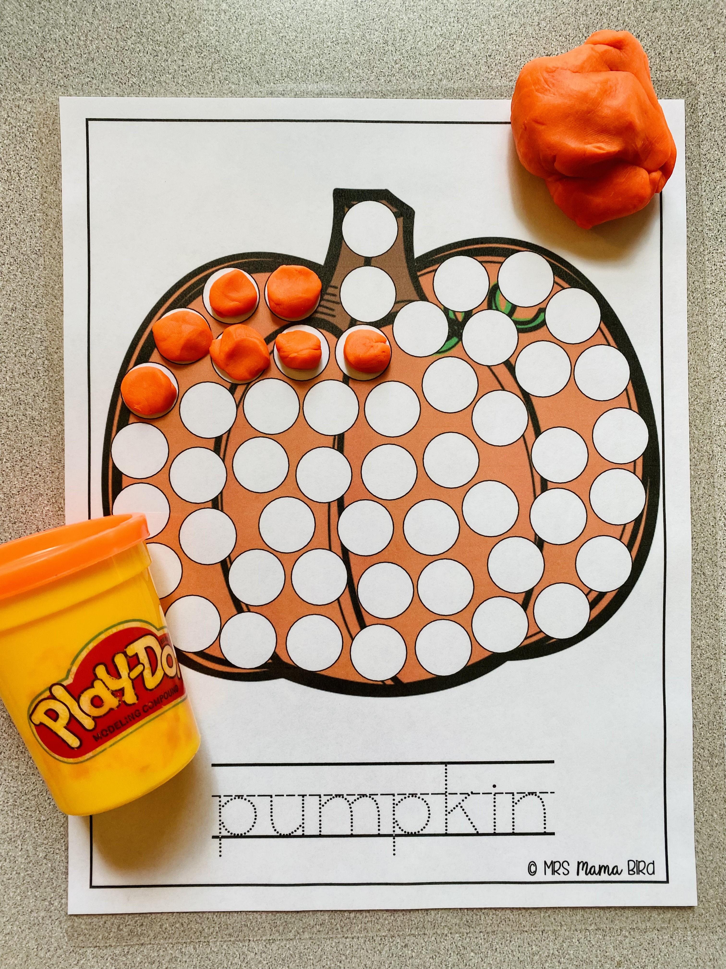 When it comes to learning through play, dice games are a winner!! I created this adorable Squirrel Roll, Count & Cover game to practice number recognition and counting. I love adding hands-on elements to my activities, so I put together a tree with a mini-crate (Dollar Tree) for collecting acorns. Preschoolers can roll the dice, count the acorns and place them in the basket, then cover the number with a little squirrel. Little ones can play independently or take turns until all the numbers on the mat are covered.