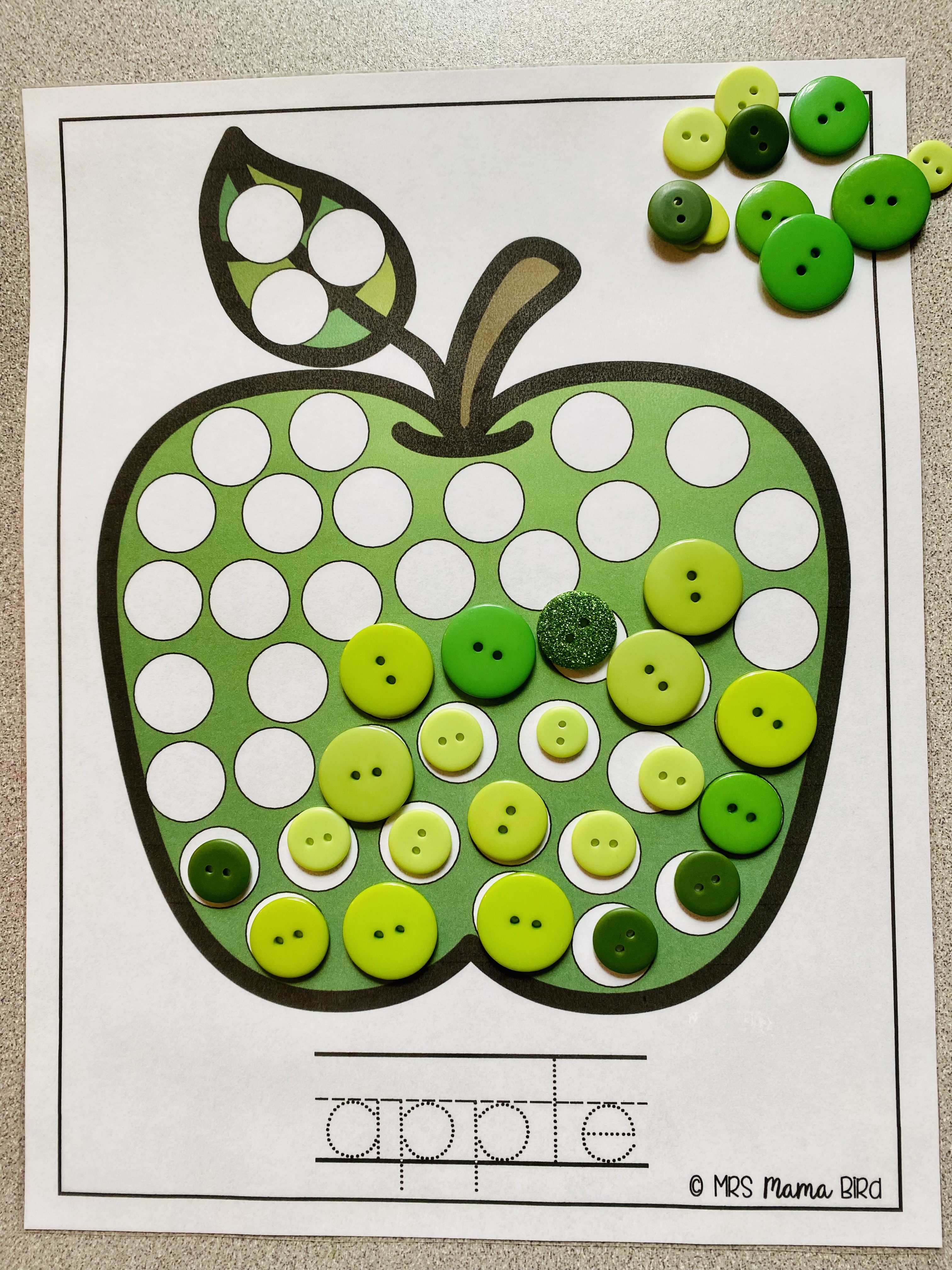 I’ve also included an adorable squirrel wooden puzzle. This one is a simple, 4-piece puzzle with traditional fall colors and a tail and ears made out of fall leaves. I love taking the puzzle apart and presenting it to preschoolers undone. This becomes like an invitation to put the puzzle back together. This puzzle is part of a set of six. I’ve divided the set up among my different Fall Teaching Totes. If you are interested in adding these to your own collection, click the photo for a link.