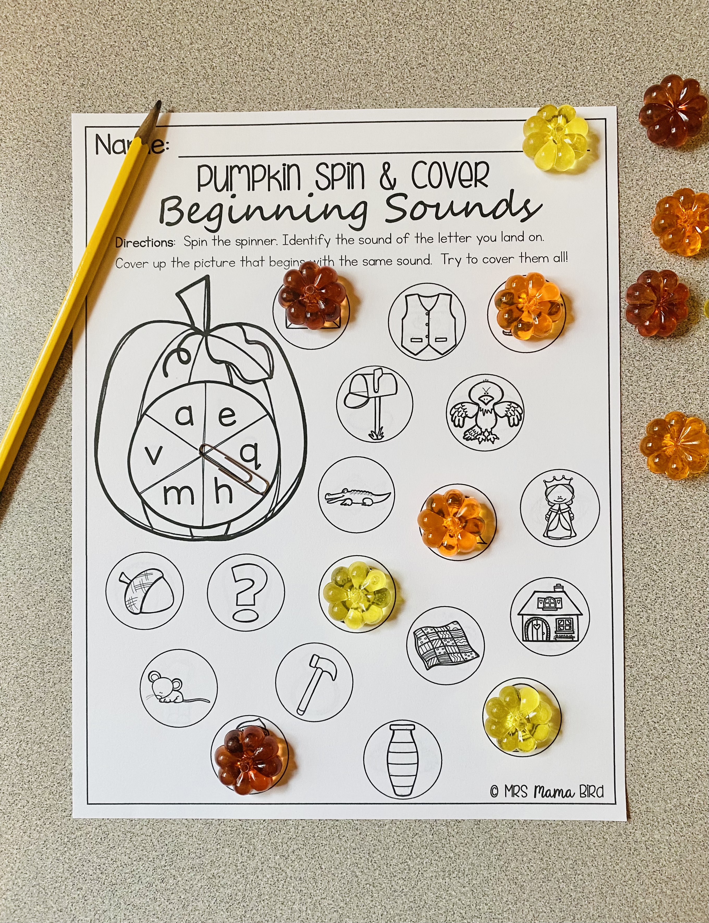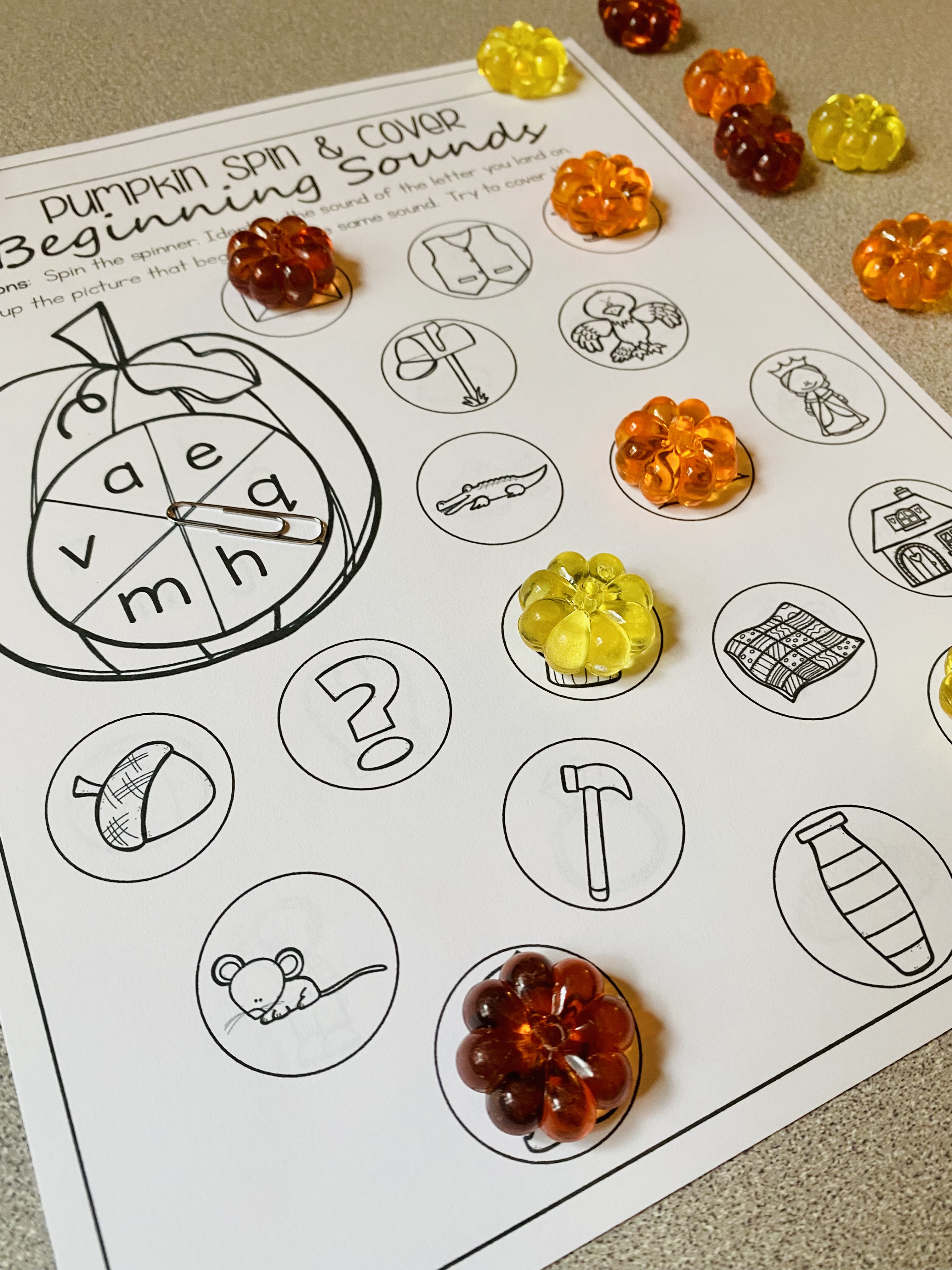 Are you visiting the pumpkin patch with your kiddos this fall?? Here’s a fun way to help them practice beginning letter sounds while pretending they are “picking pumpkins” in a pumpkin patch. This activity is perfect for introducing phonological awareness in preschool or strengthening those skills in kindergarten.