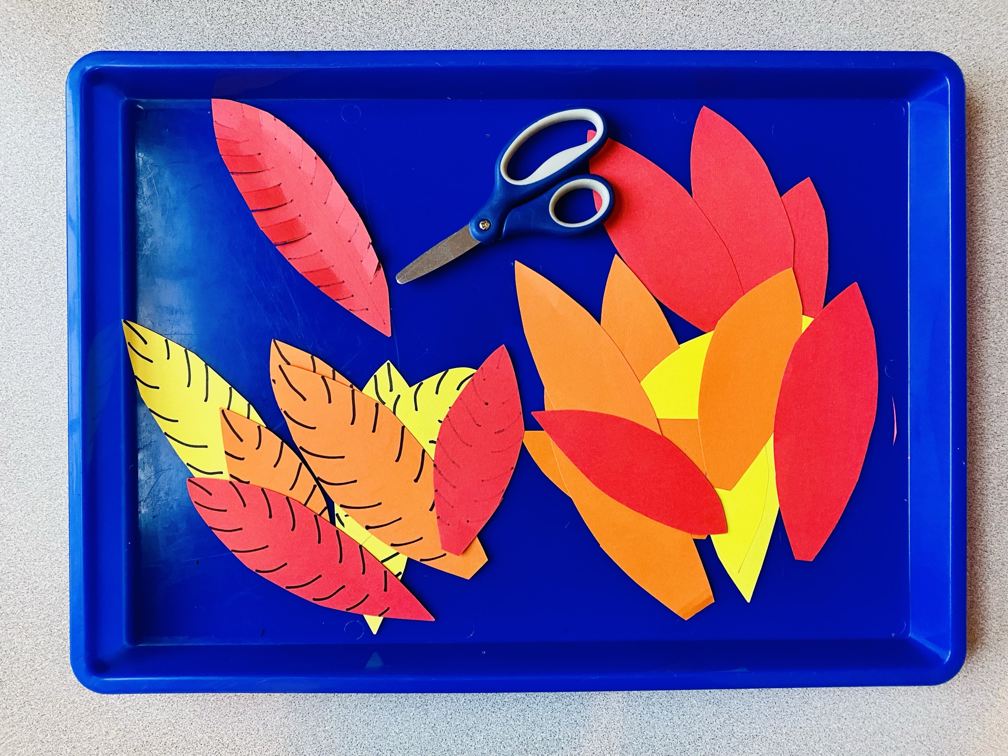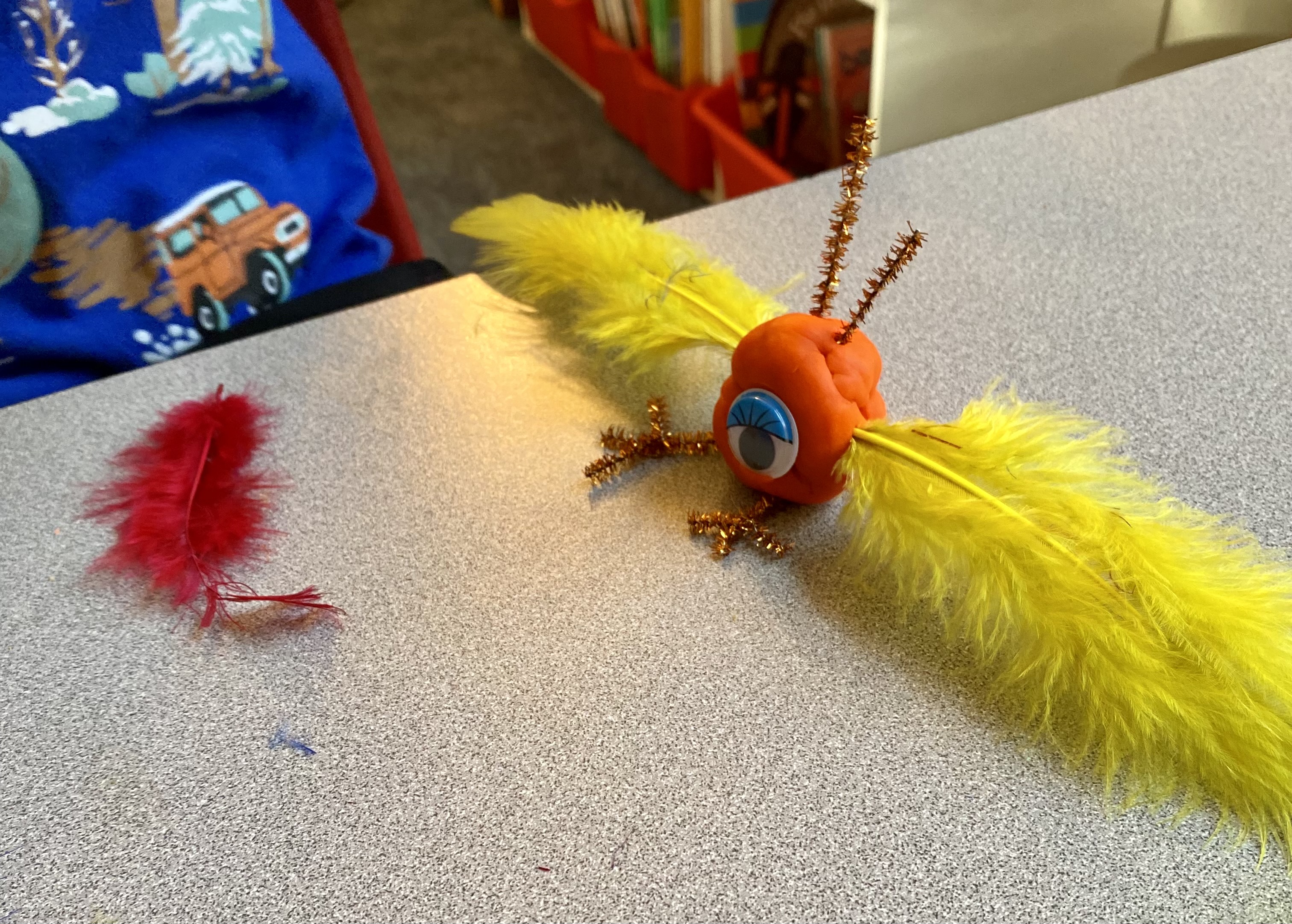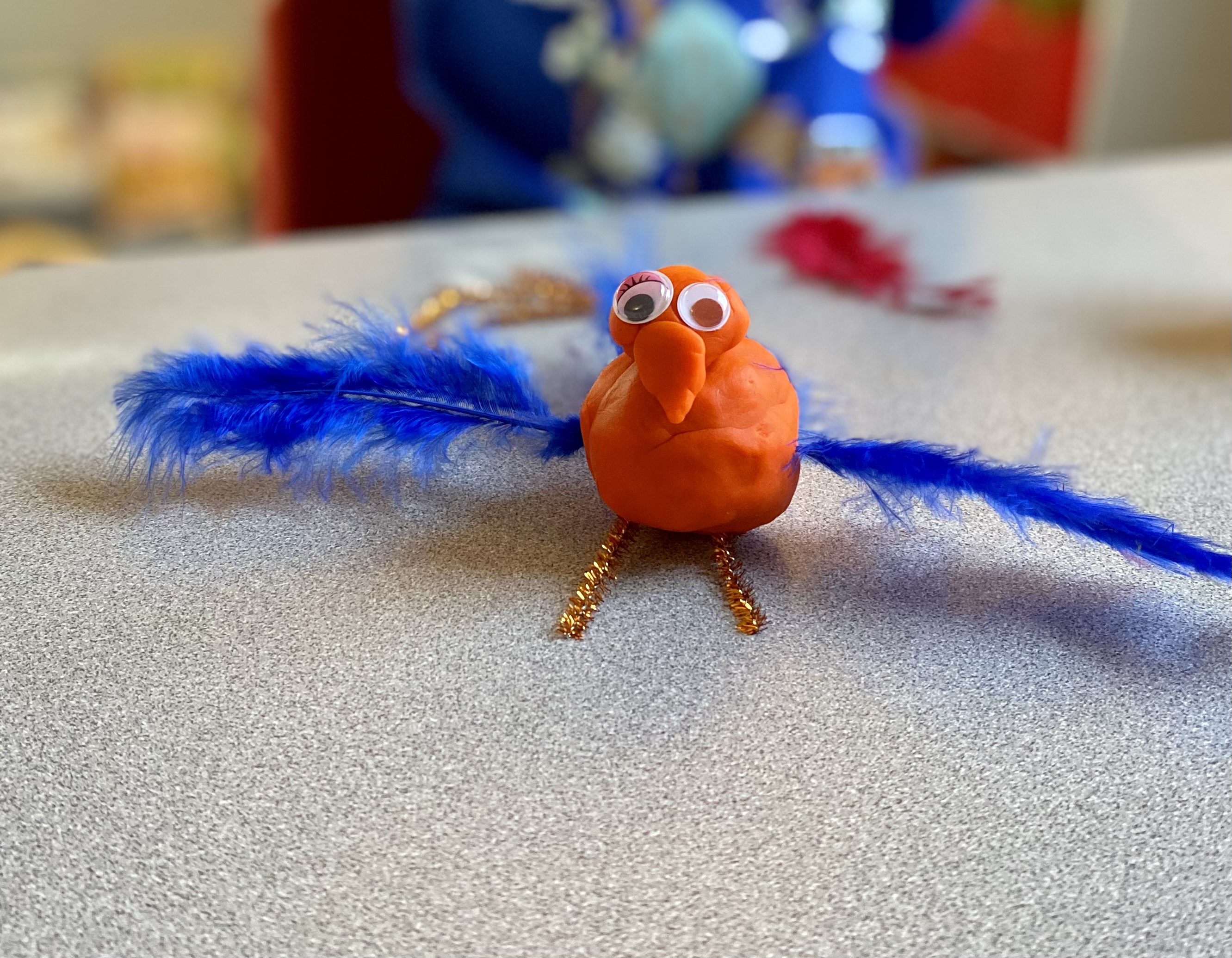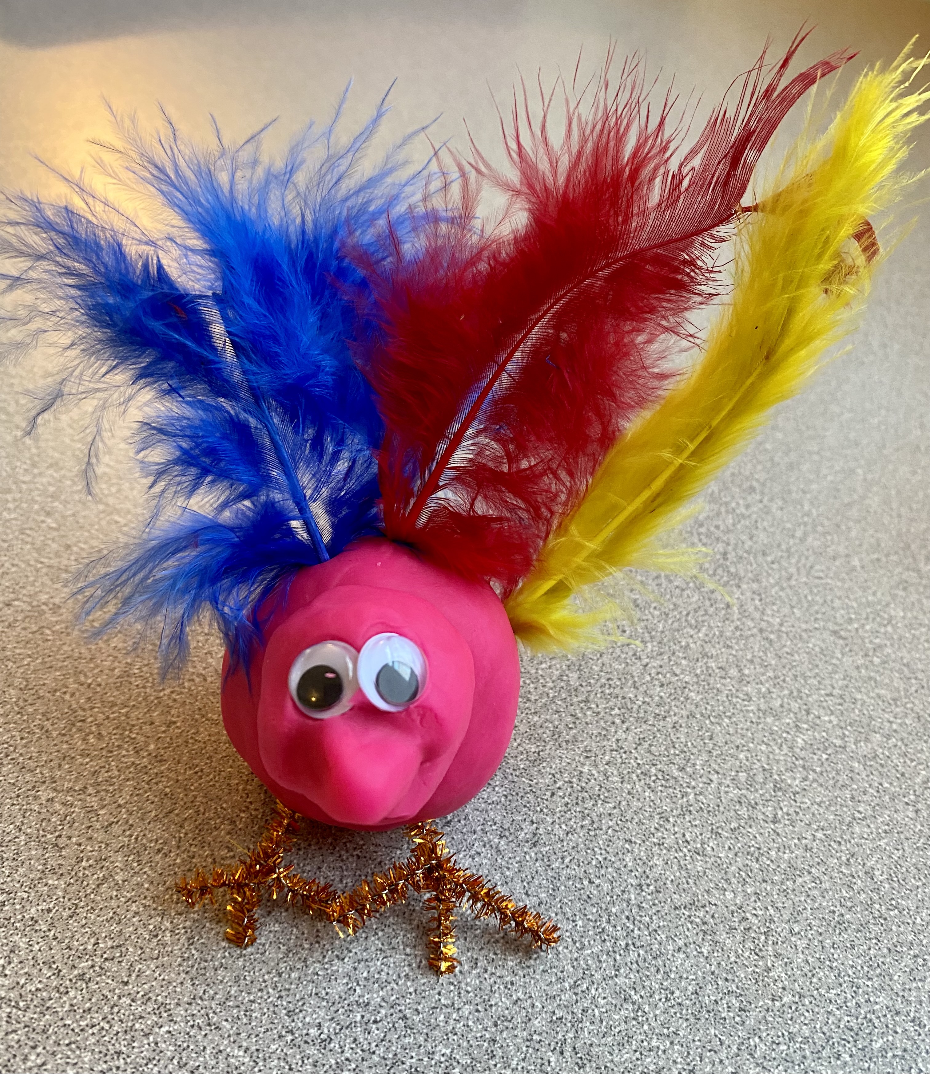 Our first activity was an invitation to create a playdoh turkey using items in our loose parts tray. Our tray included craft feathers, playdoh, rollers, googly eyes, and orange pipe cleaners. My intention was to prepare brown playdoh for the turkey’s body, but sometimes you just run out of time! There’s always next time.