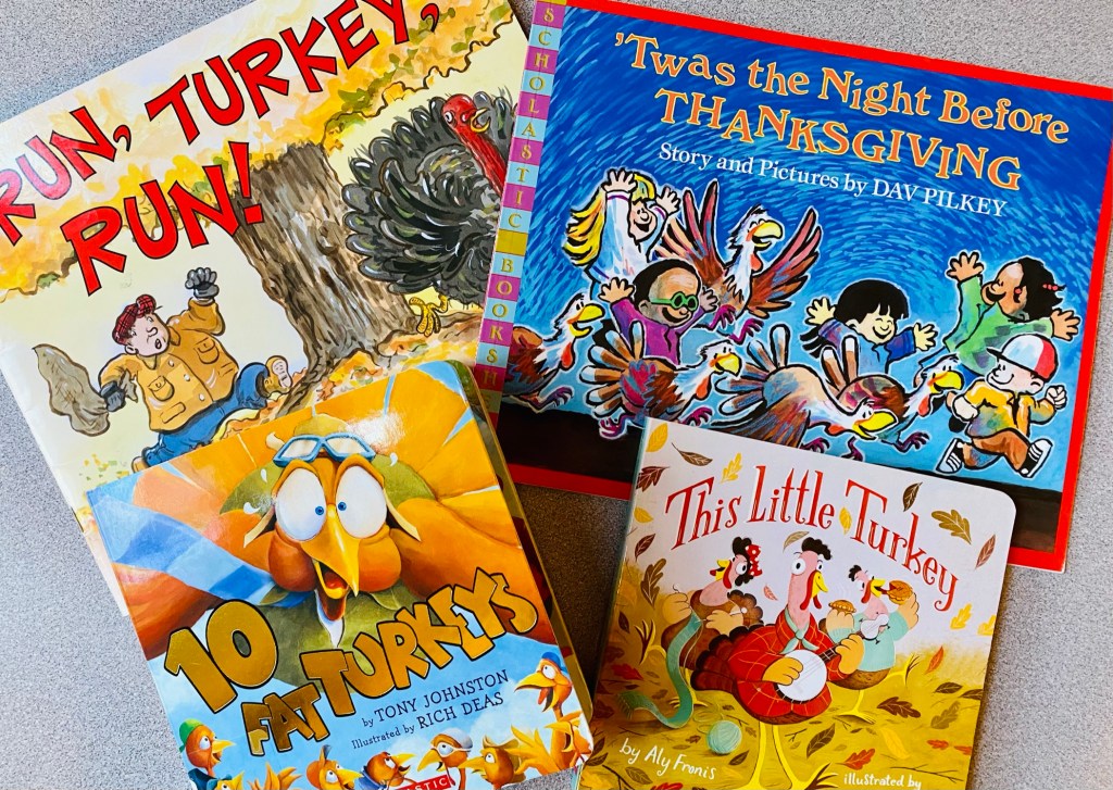 I always start our learning time with a read aloud or two. I have my Thanksgiving books divided into three categories: turkeys, Thanksgiving traditions, and gratitude. Run, Turkey, Run, The Night Before Thanksgiving, 10 Fat Turkeys and This Little Turkey are a few of my turkey picks for this year.